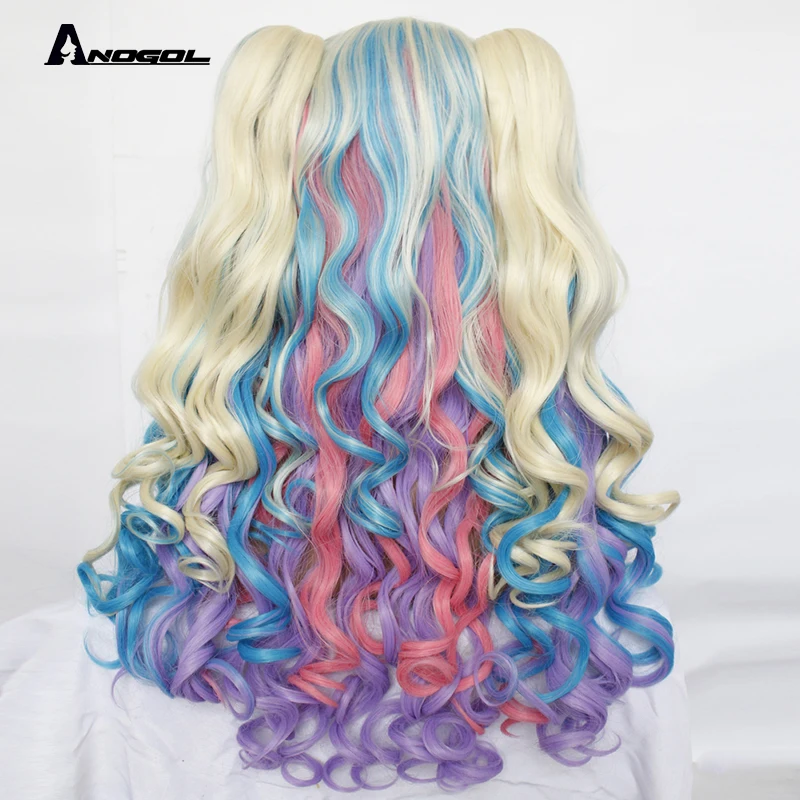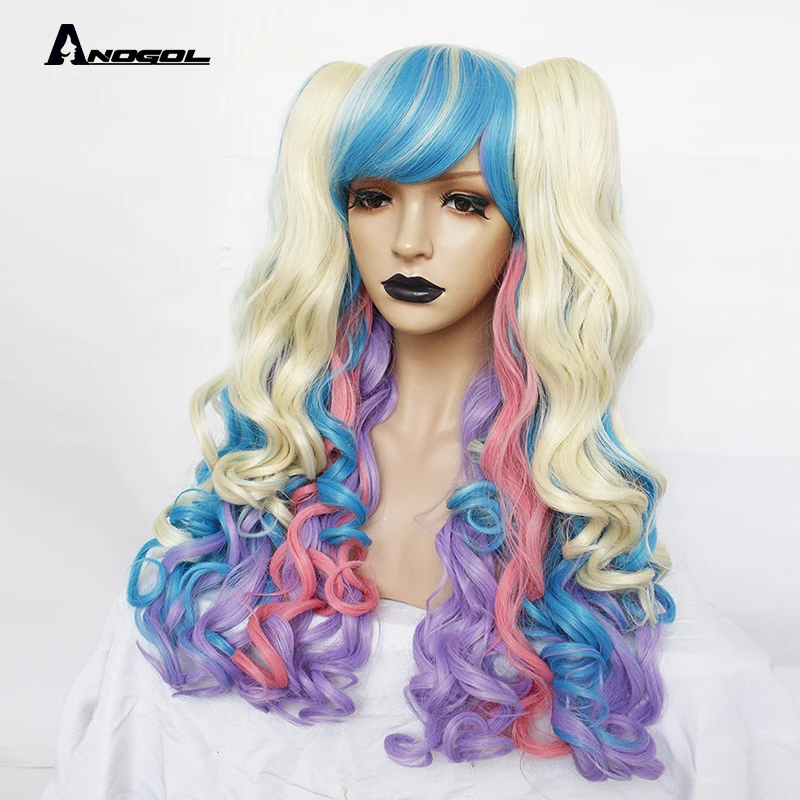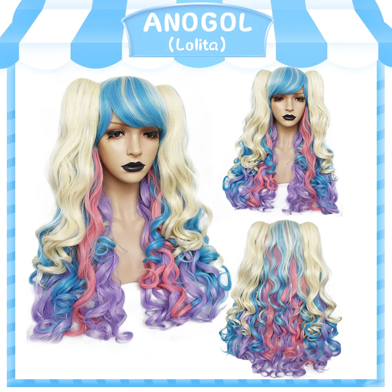 Hot Sale ANOGOL Long Body Wave Lolita high temperature fiber brown Pink Red Black Blonde Multi-color Synthet