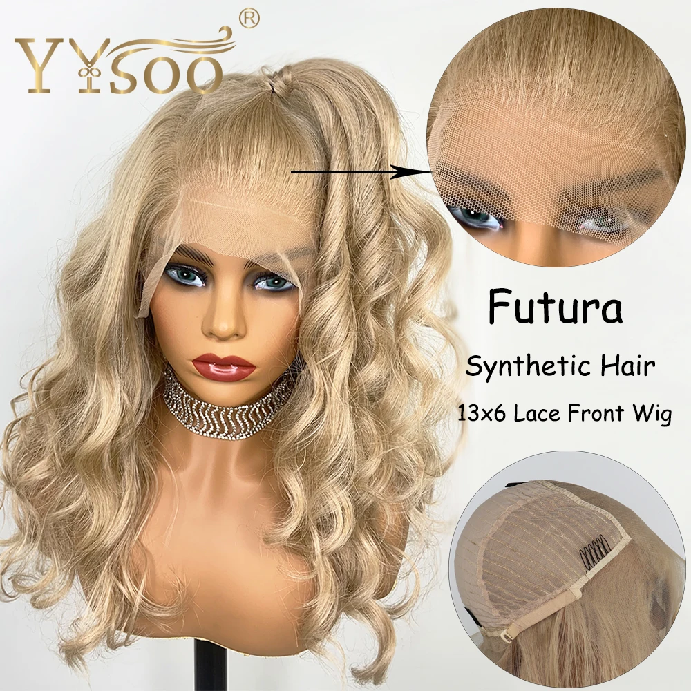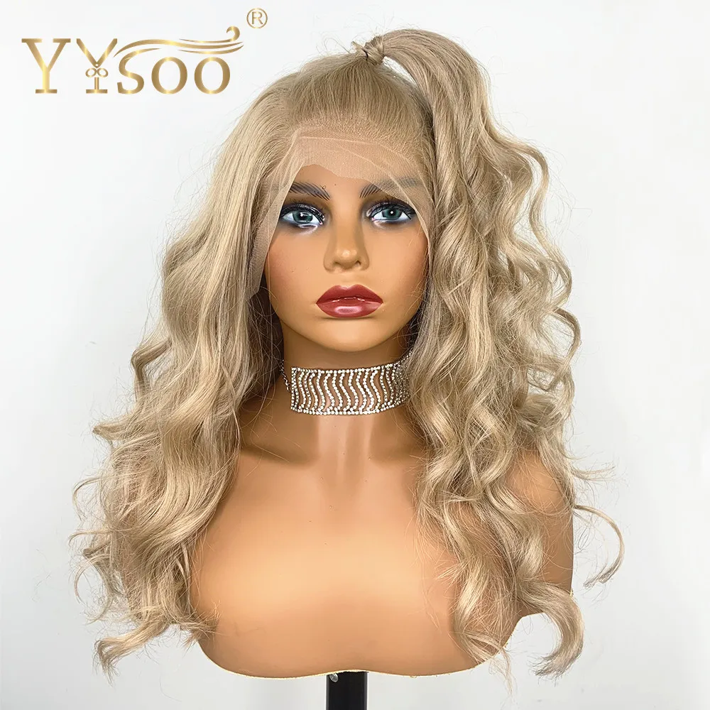 HOT SALE YYsoo 13x6 Synthetic Lace Front Blonde Wigs for Women Half Hand Tied Heat Resistant Fiber Hair Repl