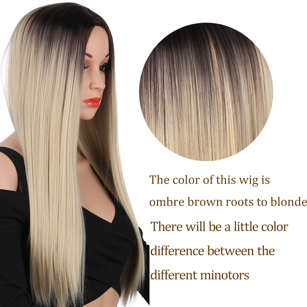 BEST SELLER Pageup Long Straight Ombre Synthetic Wig For Women Pink/Red/Purple/Blue Middle Part Heat Resistant