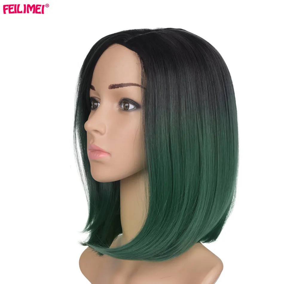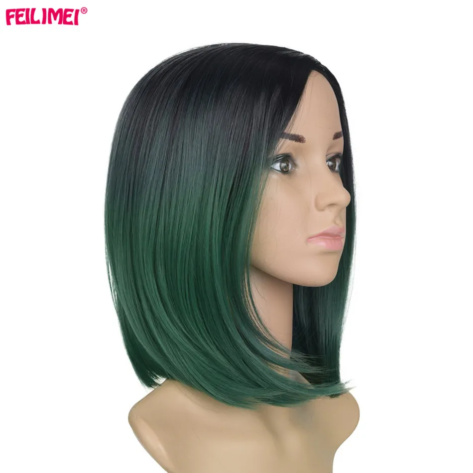 Feilimei Black Short Straight Wig 160g African American Females hair Extensions Synthetic Japanese