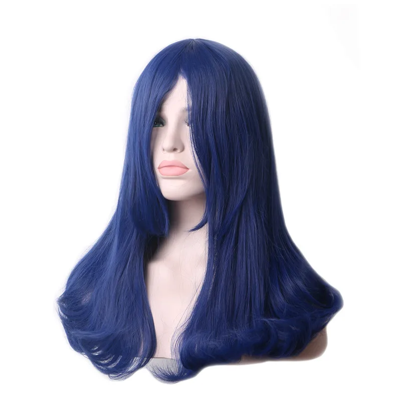 WoodFestival Female Navy Blue Synthetic Wig with bangs Long Heat Resistant Cosplay Wigs for Women