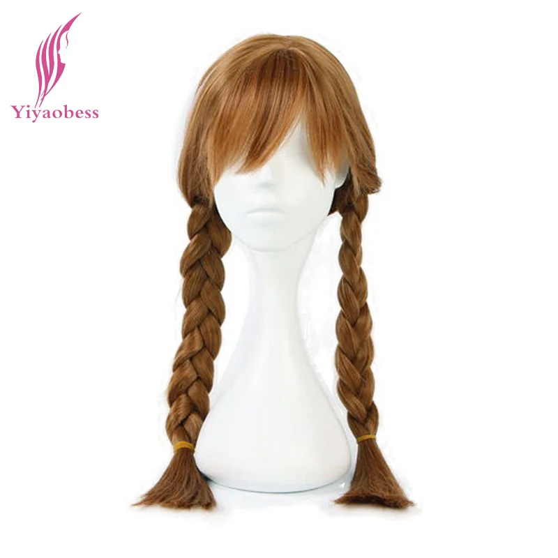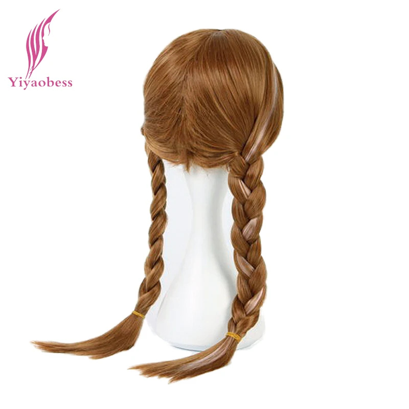 HOT SALE Yiyaobess 28inch Synthetic Long Brown Blonde Anna Elsa Cosplay Wig With Ponytails Whip Heat Resista