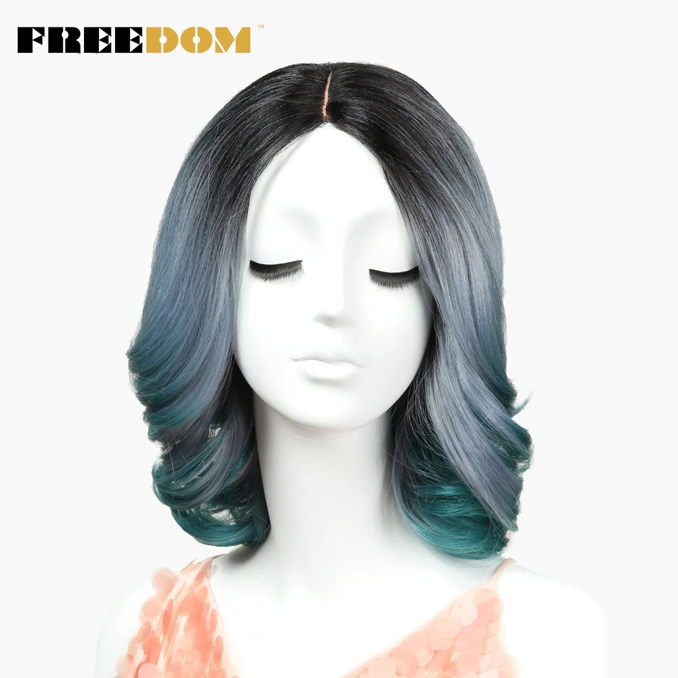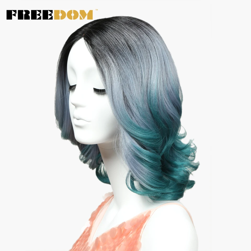 FREEDOM Synthetic Hair Wigs For Black Women 12Inch Wavy Short Lace Wigs african american Synthetic