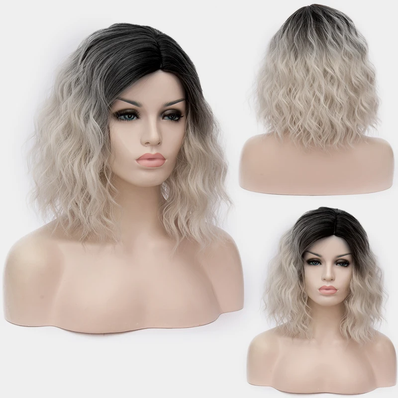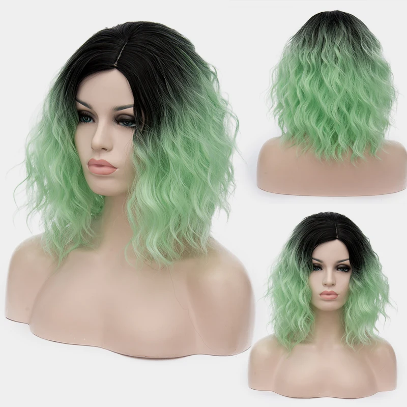 HOT SALE VICWIG Ladies Blonde Mixed Black Color Gradient Short Wig Synthetic Cosplay Wig Green Blue Purple G